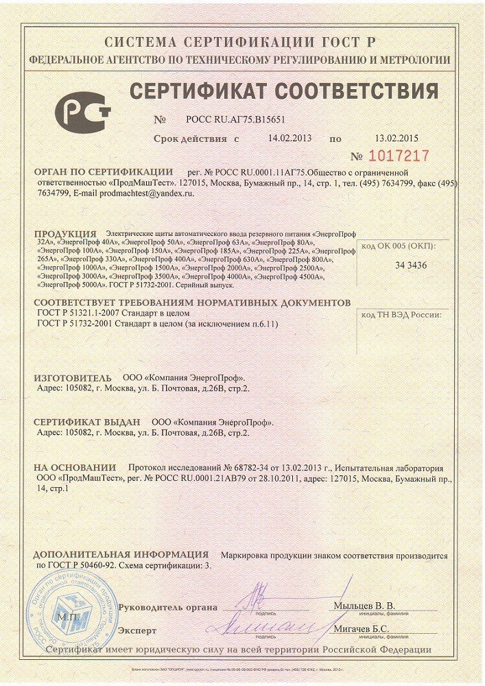В наличии сертификаты соответствия, пожарные сертификаты и сертификаты CPO